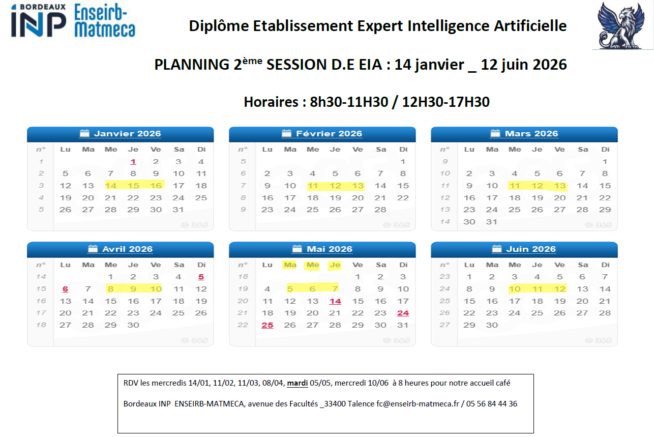 Nous contacter pour recevoir le calendrier du DE EIA : fc @ enseirb-matmeca.fr